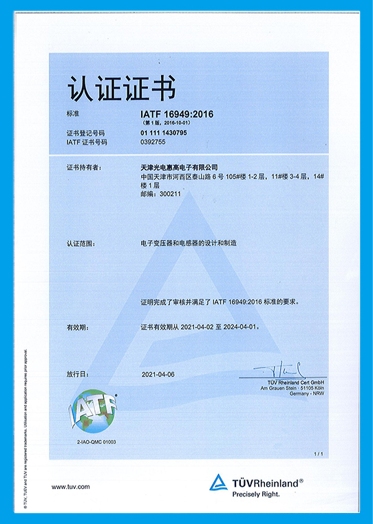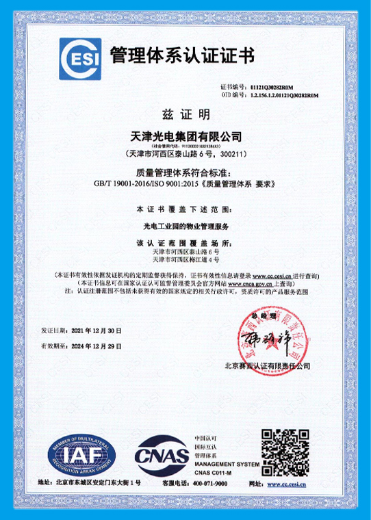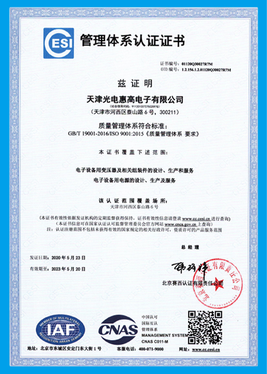 質(zhì)量是企業(yè)可持續(xù)發(fā)展的保障。天津光電已通過ISO9001質(zhì)量體系認證、ISO14001環(huán)境體系認證、 ISO / TS16949質(zhì)量體系認證、國家信息產(chǎn)業(yè)部電信設備進網(wǎng)許可、CCC安全認證、CE、UL、JIS、CSA、ISC、VDE、 AS/NZS等認證。